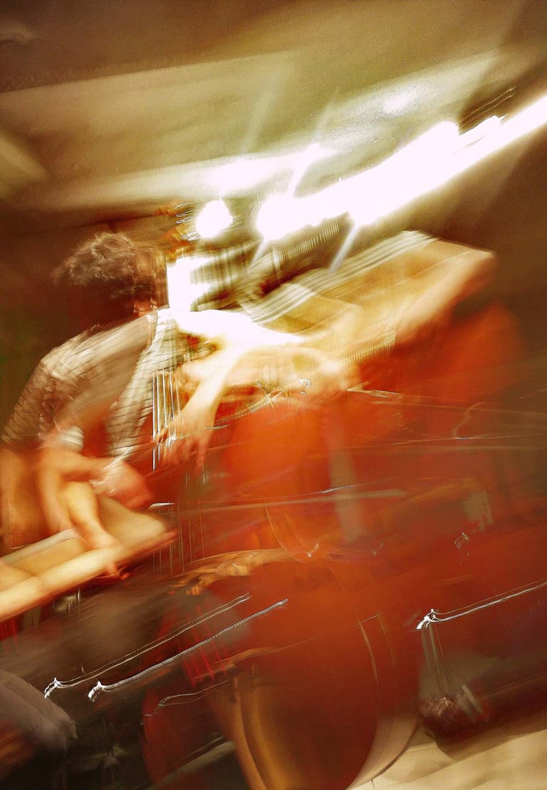 Après des études classiques (médaille d’or de contrebasse), la pratique de la musique contemporaine et une grande fréquentation des scènes jazz, Benoît Cancoin allie son goût de l’improvisation et des sons contemporains dans une recherche qui l’amène à concentrer son travail sur la « matière sonore », les « frottements sensoriels sonores »…