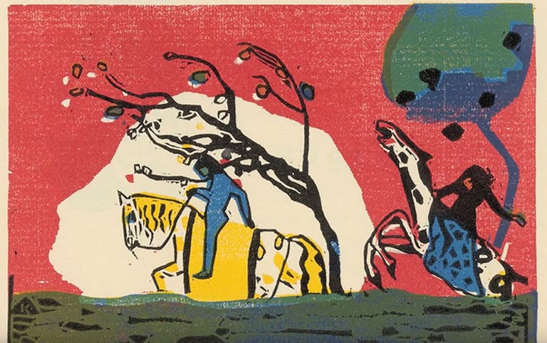 Kandinsky commence à écrire des poèmes en prose, 38 au total, entre 1908 et 1912. En 1913, ils sont publiés en allemand par Piper Verlag sous le titre Klänge, Sounds, accompagnés de gravures sur bois en couleur et en noir et blanc.