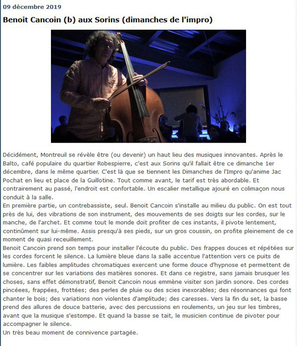 Grâce à la proximité, la qualité de l’instrumentiste, la taille de l’instrument et la douceur du son, l’expérience est très belle, simple, inoubliable. Un aspect artisanal, technique. Une profonde sensibilité.